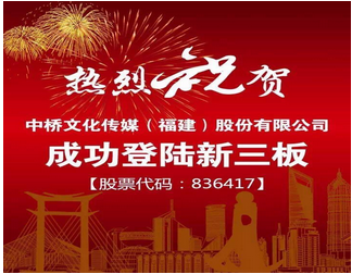 • 紅橋投資項(xiàng)目中橋文化傳媒于2016年5月正式新三板掛牌上市 [2016-05-20]